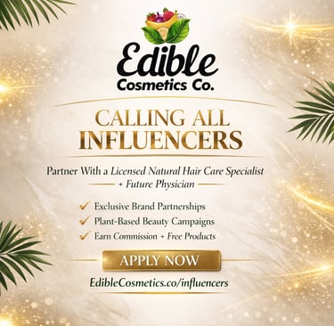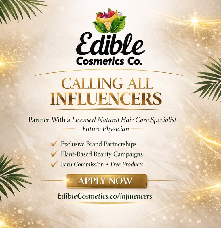We’re inviting serious, professional influencers to partner with Edible Cosmetics Co. If you create high‑quality content in beauty, natural hair, wellness, or lifestyle and you’re ready to grow with a plant‑based, science‑minded brand, this program is for you.