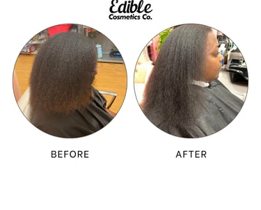 Clients select and purchase the Edible Cosmetics Co. products they want, and those products are used during their service, including on natural hair, extensions, and protective styles so, they can experience how each formula feels and performs in real time.